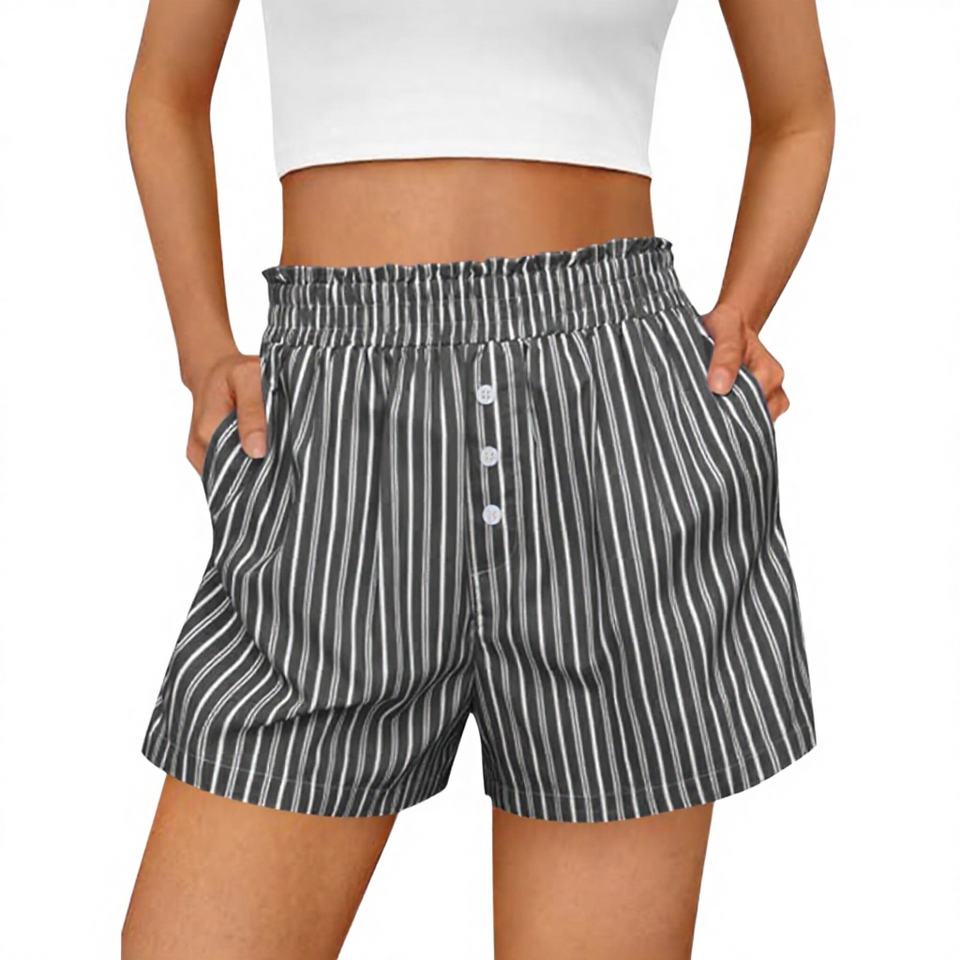 Pantalones Cortos Casuales Holgados de Algodón 100% Ecológico, Transpirables, con Botones y Cordón Ajustable, a Rayas, para Mujer, en Oferta