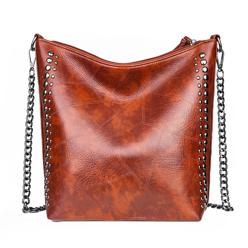 Bolso de Mano de Cuero PU para Mujer, Color Sólido, Impermeable, con Remaches, Bolso de Hombro, Bolso Cruzado con Cremallera, para Todas las Temporadas