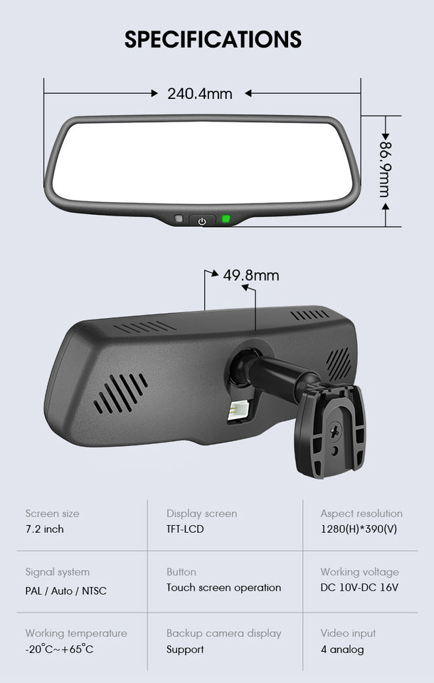 Venta caliente al por mayor espejo retrovisor con cámara Pantalla Completa espejo retrovisor automático espejo retrovisor con atenuación automática