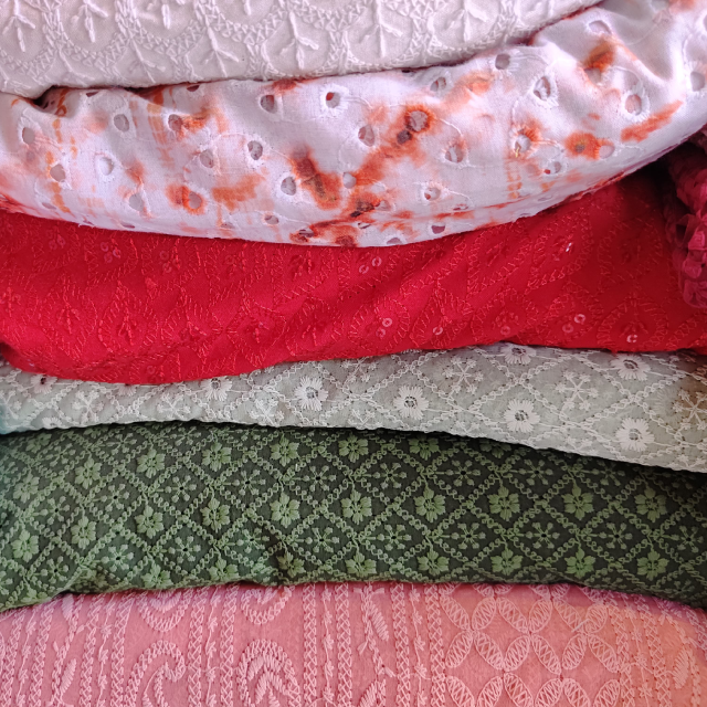 Venta caliente tejido rayón Chikan bordado indio tela textil para la fabricación de vestidos al por mayor suministro fabricante competitivo