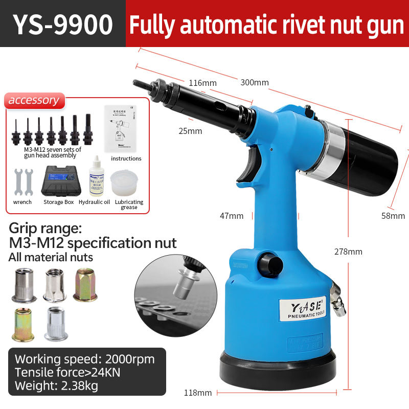 Oferta Especial: Remachadora Neumática Automática YASE YS-9900 (Azul/Rojo) - Herramienta para Tuercas de Todos los Materiales M3-M12 OEM para Ensamblaje Industrial