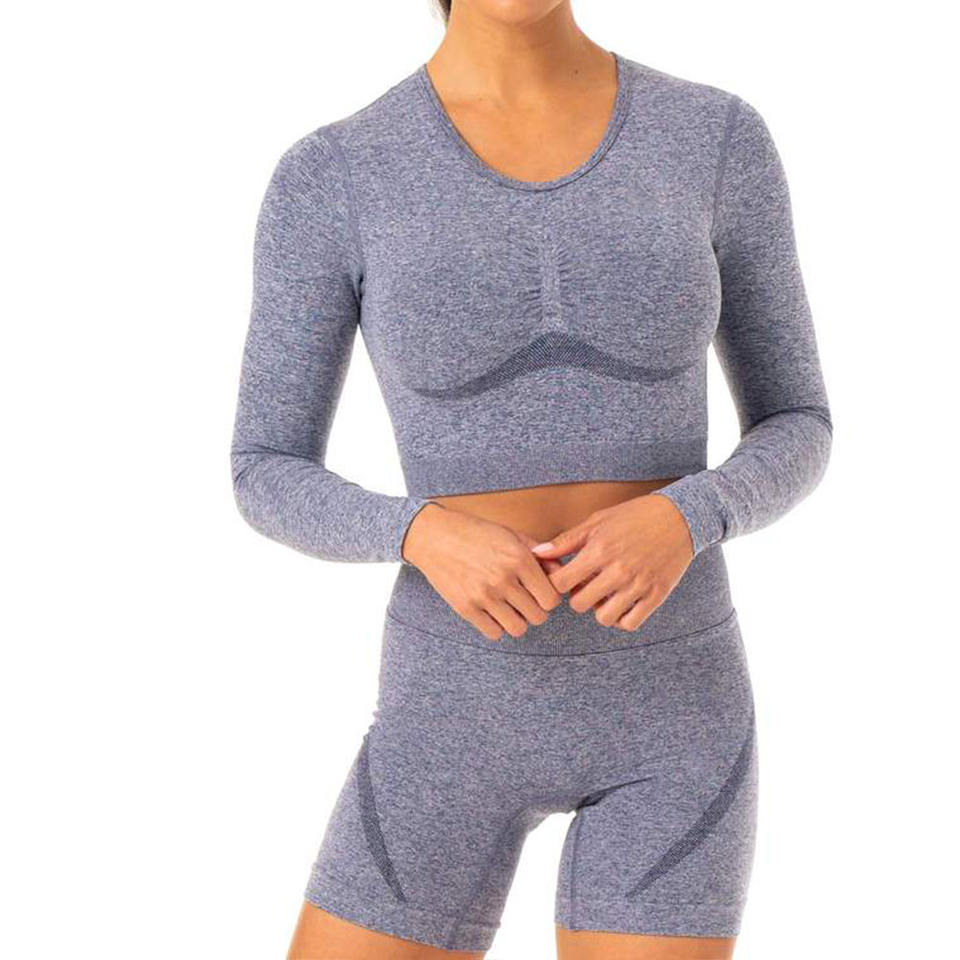 Top de manga larga sin costuras para mujer, ropa deportiva sexy transpirable de manga larga para gimnasio