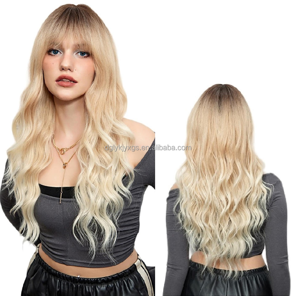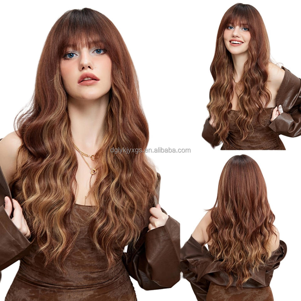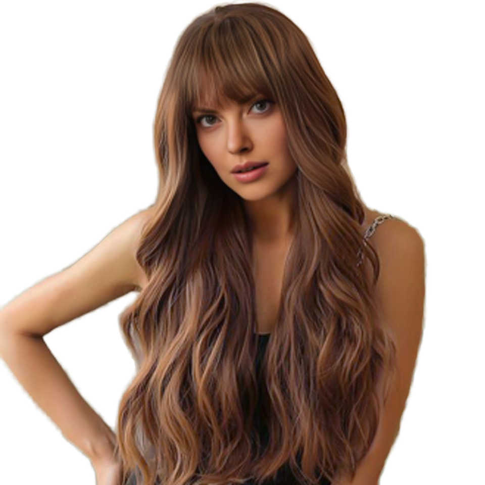 Peluca Rizada con Flequillo de Ondas Naturales de 26 Pulgadas, Peluca de Princesa para Mujer, para Uso Diario, Carnaval y Fiestas Temáticas