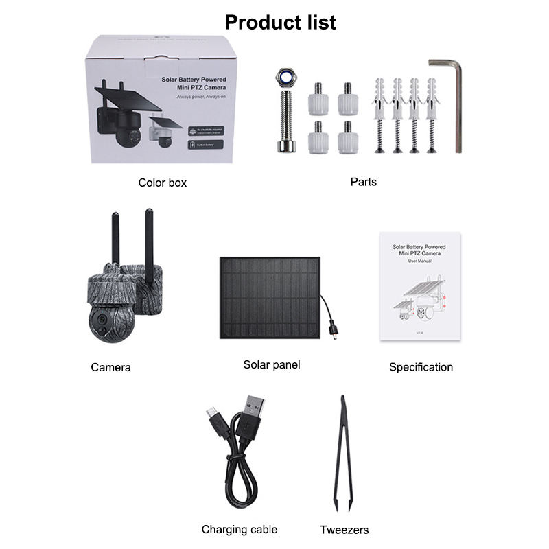 Ventas calientes 4G Solar Camer 4MP 6MP Wireless PTZ CCTV Network Cámara de batería solar para la seguridad exterior del Hogar