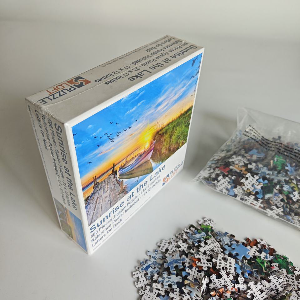 Gran oferta, rompecabezas personalizado de papel a todo Color, tablero blanco delicado, rompecabezas para adultos, amanecer en el lago, rompecabezas de 1000 piezas, 23*17 pulgadas