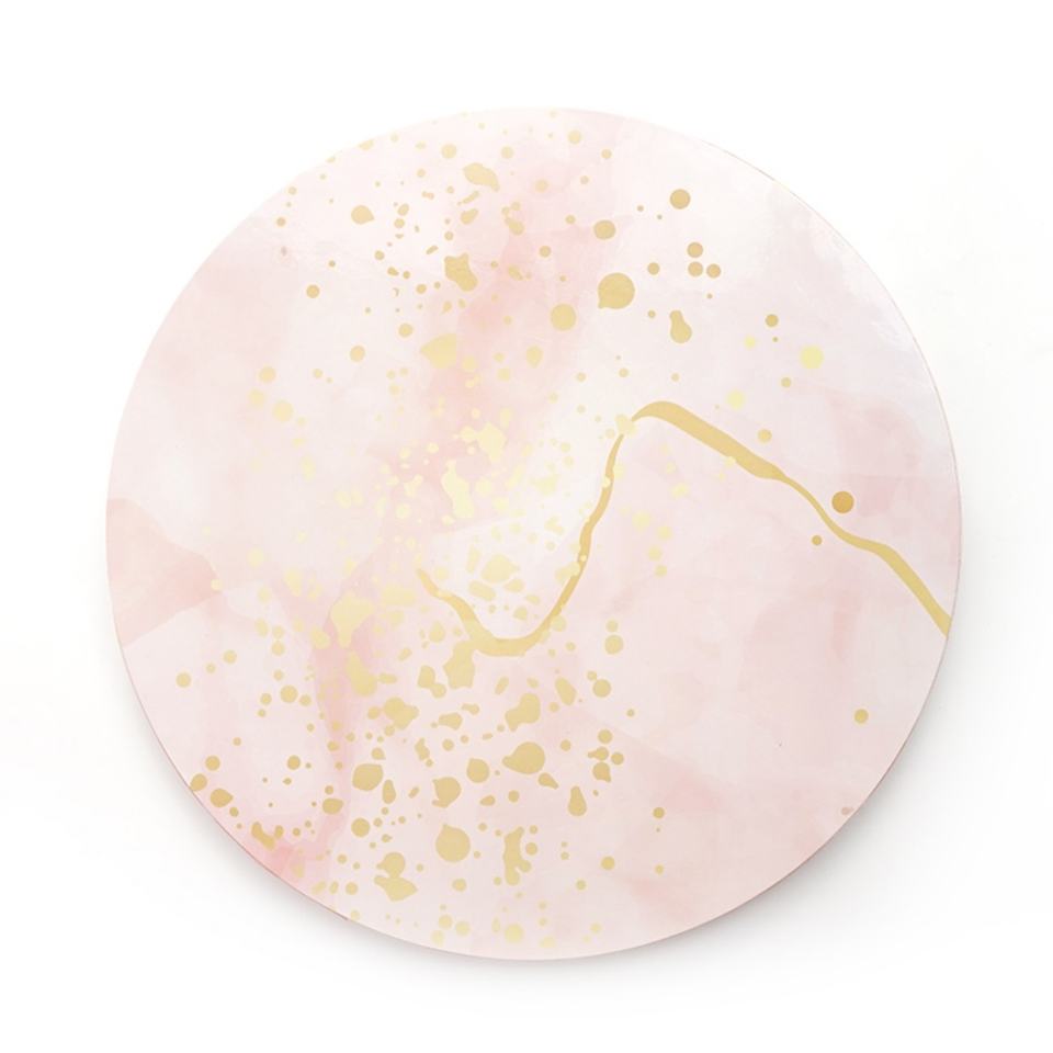 Base Redonda de MDF para Pastel, Personalizada, con Diseño de Mármol y Lámina Dorada, en Blanco, en Oferta