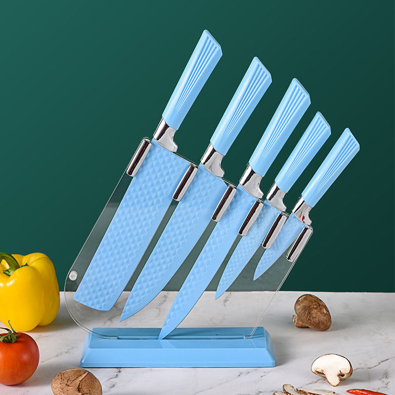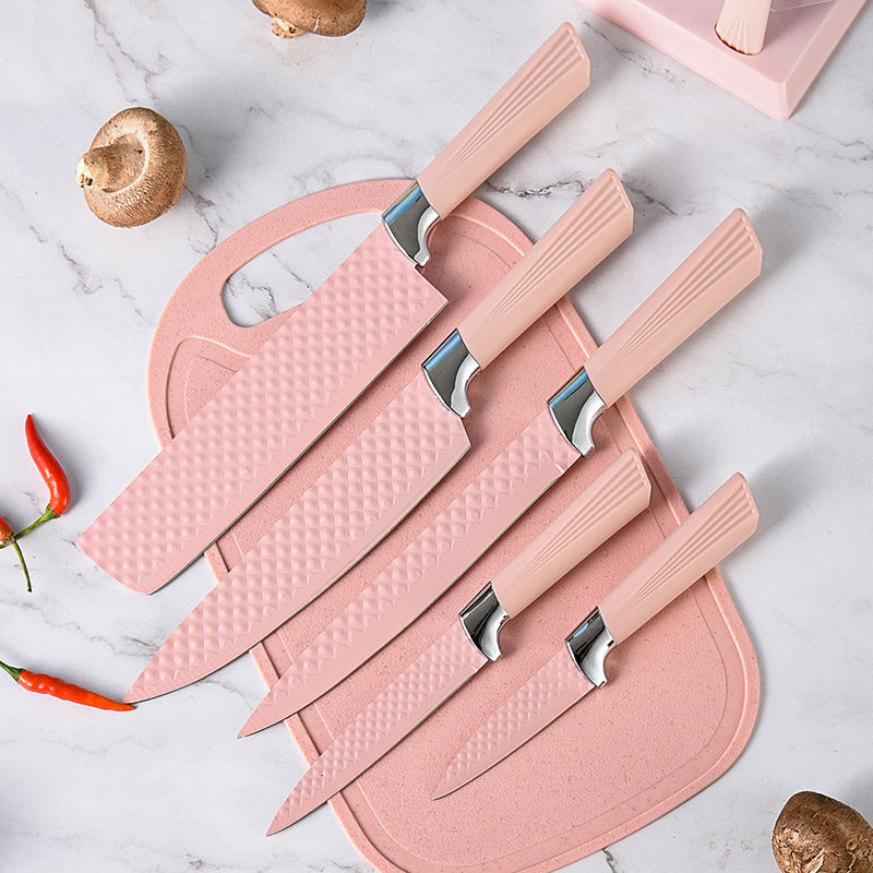 Juego de cuchillos de cocina con patrón de diamante de gran oferta Juego de cuchillos con mango de plástico