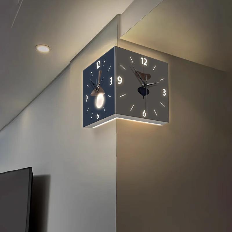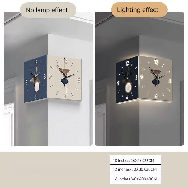 Gran oferta, reloj de pared de esquina luminoso de inducción moderno, decoración cuadrada para sala de estar, reloj de pared Simple de doble cara