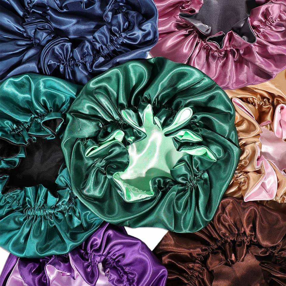 Hot Selaing Doble capa con volantes Satén Custom Bonnets De Douche Personnalisés Parent Child Hair Bonnet Bulk