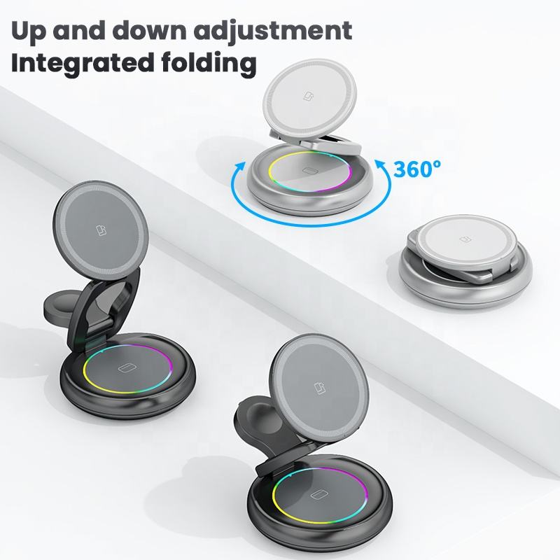 360 que giran la aleación 3 del cinc en 1 cargador inalámbrico magnético
