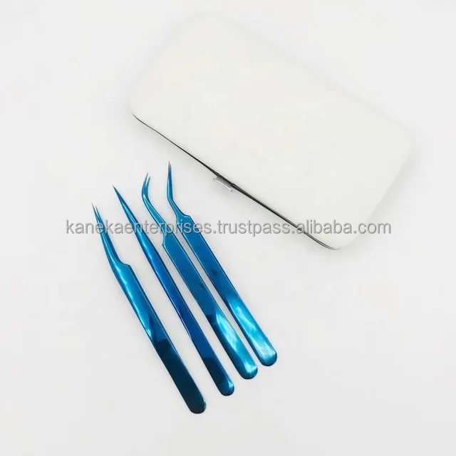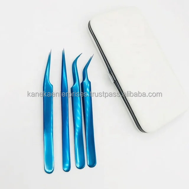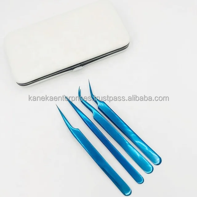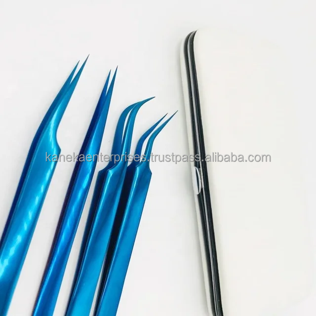 Pinzas Profesionales para Extensión de Pestañas de Acero Inoxidable Azul, Venta Caliente, Pinzas Curvas Antimagnéticas y Antiestáticas al por Mayor