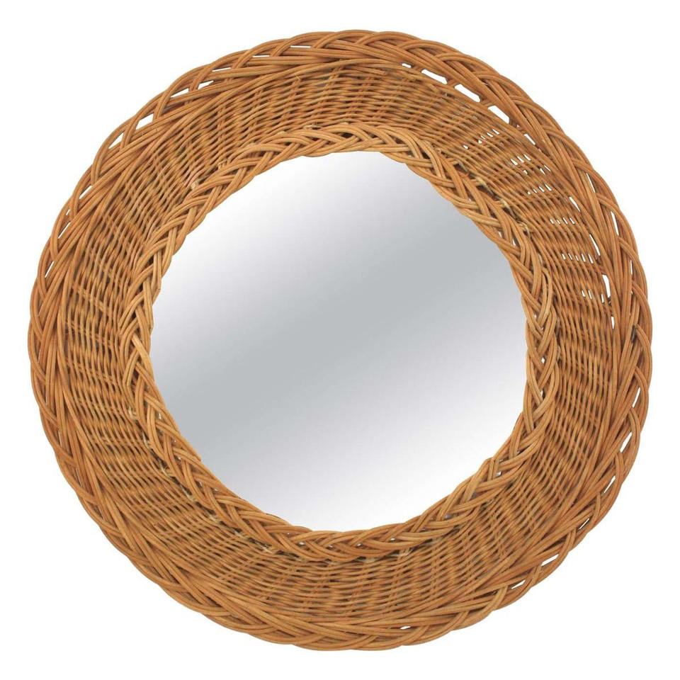 Espejo de Pared Colgante de Mimbre Estilo Bohemio, Diseño Floral, Decoración de Dormitorio, Hecho en Vietnam, Paquete Multipieza, ¡Oferta!