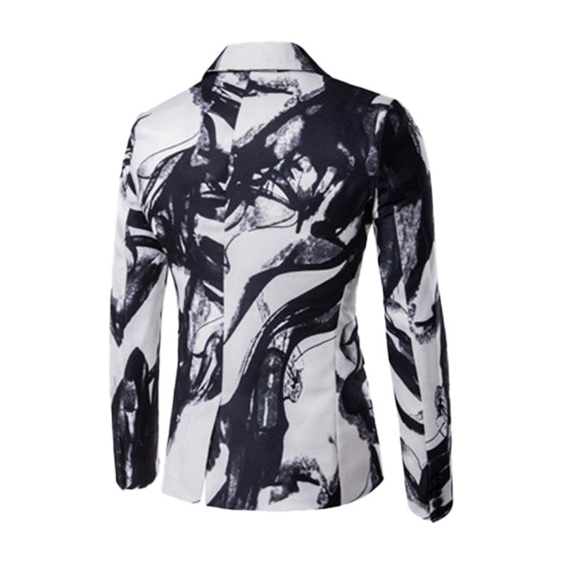 Blazer Ligero Informal para Hombre, Estampado de Tinta, Corte Entallado, Cierre de un Solo Botón, Transpirable, en Oferta