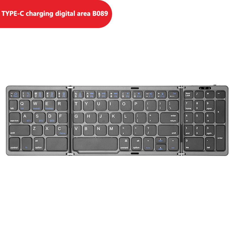 Teclado plegable de Venta caliente para tableta Android Mini teclado recargable plegable Triple inalámbrico Ultra delgado con teclado numérico