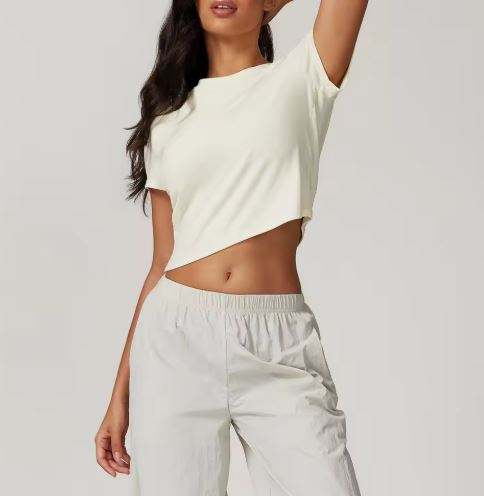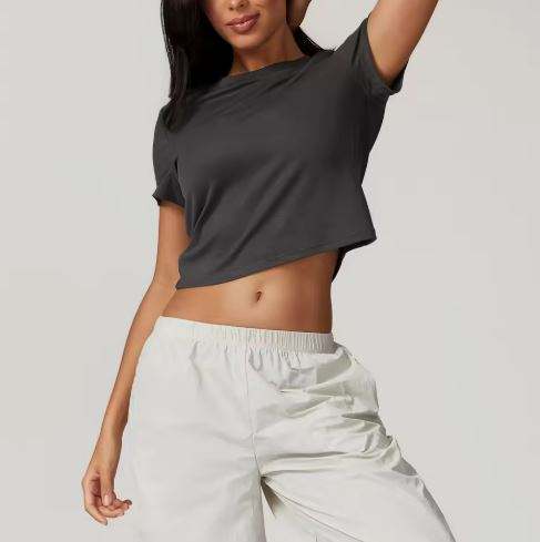 Vendedor caliente Crop Tops para mujeres CottonCompressed High Round Neck Tight Plain Blank camiseta para mujeres personalizadas Crop Tops