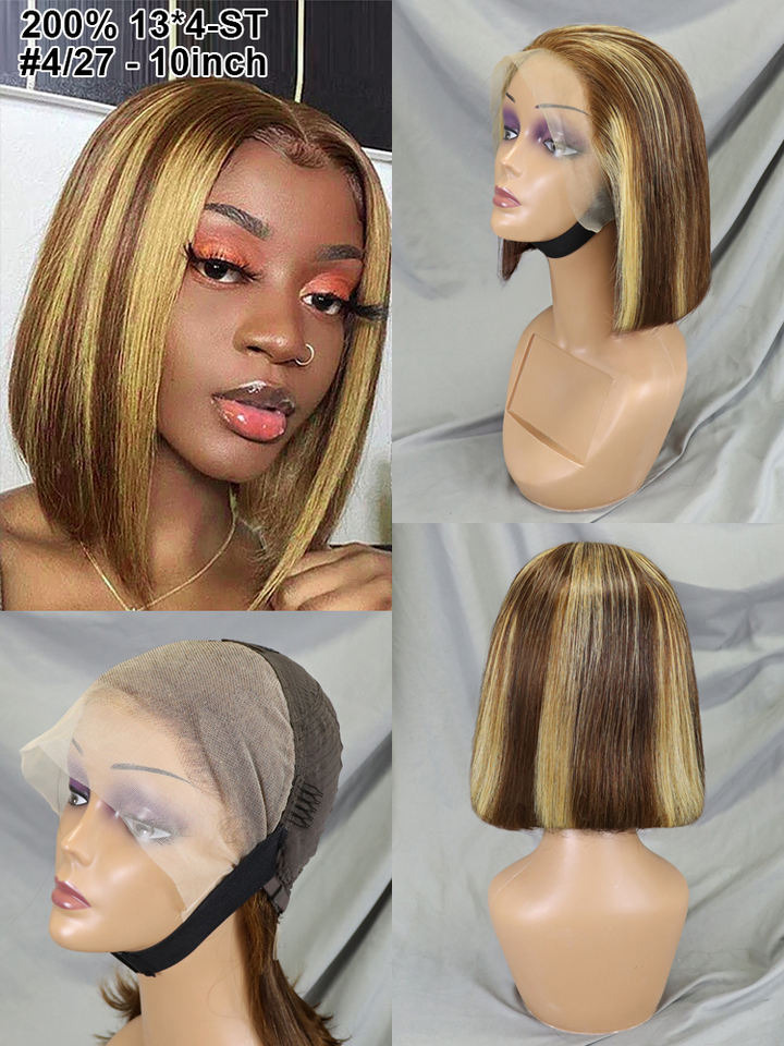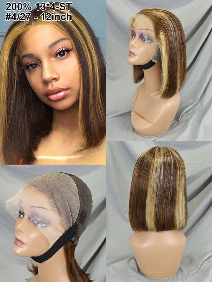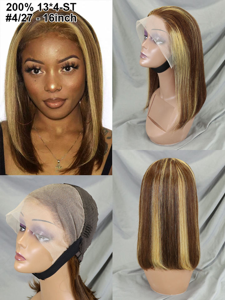 Venta caliente 10-16 pulgadas P4/27 recto 13x4 Cierre encaje Bob peluca doble dibujado cabello humano vietnamita al por mayor pelucas de Color Piano