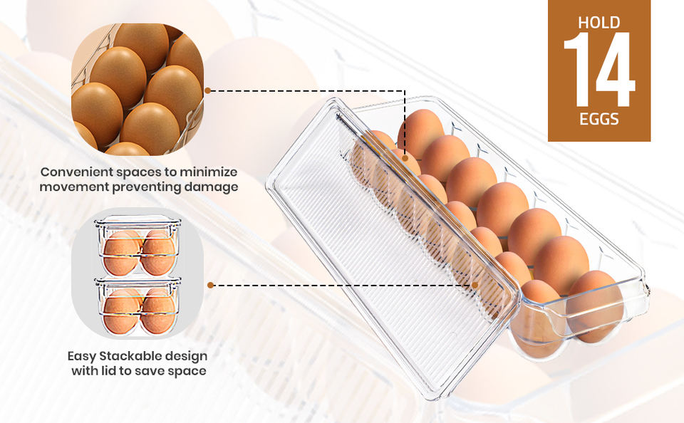 Nombre del producto:14 Titular de huevo para el refrigerador con tapa y mango