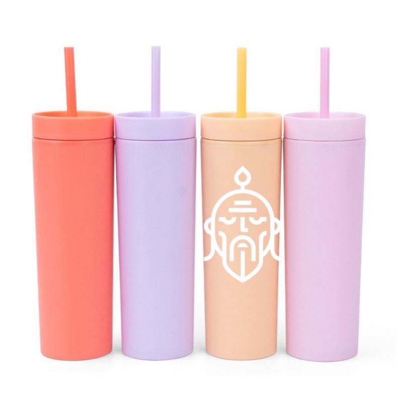 Venta caliente 16Oz mate suave al tacto taza de plástico personalizado a granel doble pared reutilizable vasos de paja de plástico tazas