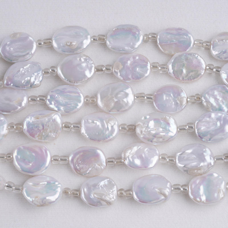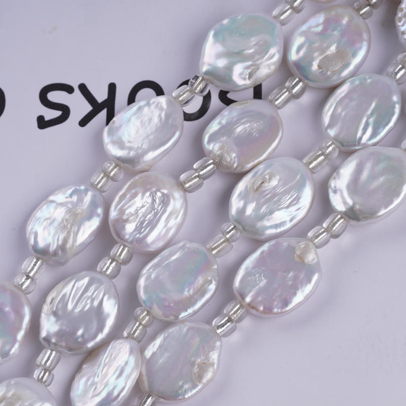 Perlas de Agua Dulce Blancas Barrocas de 18 cm, 15-16 mm, Botón Elíptico, Perlas Naturales Sueltas para Hacer Joyas y Pulseras