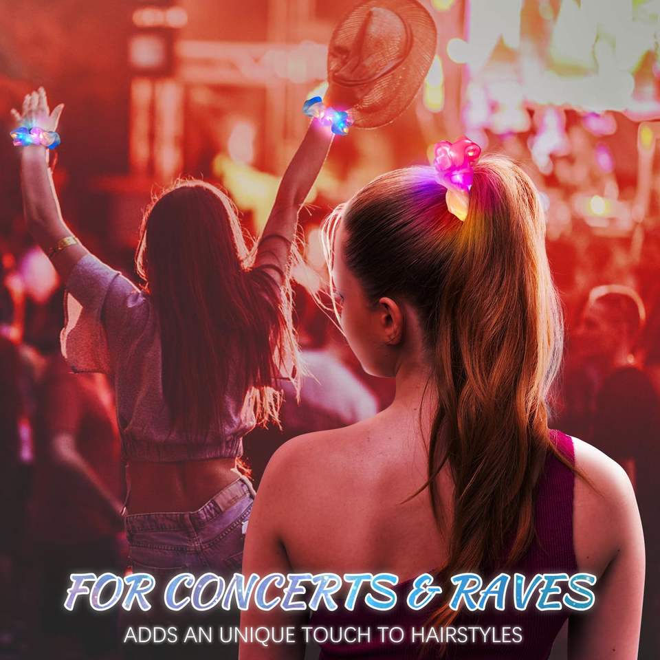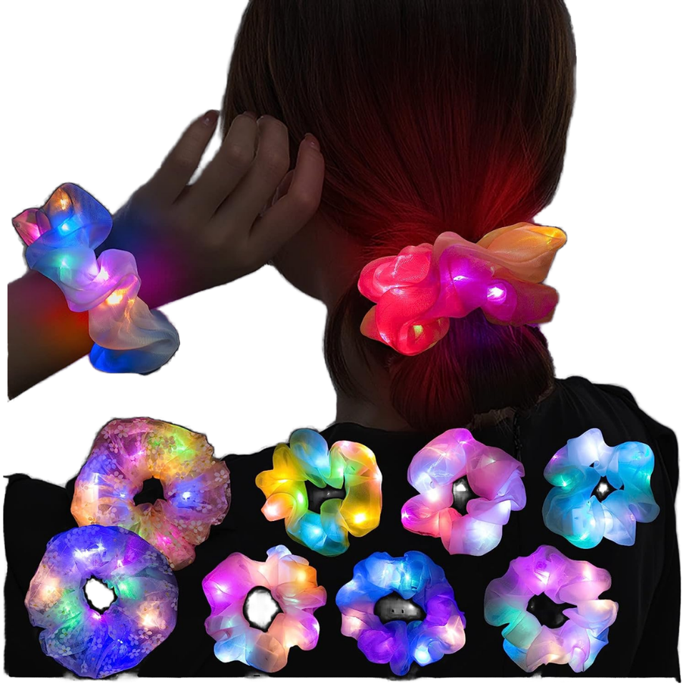 Venta caliente 3 modos LED luz luminosa satén elástico pelo Scrunchies brillo oscuro Nylon accesorios para el cabello para Halloween seguro