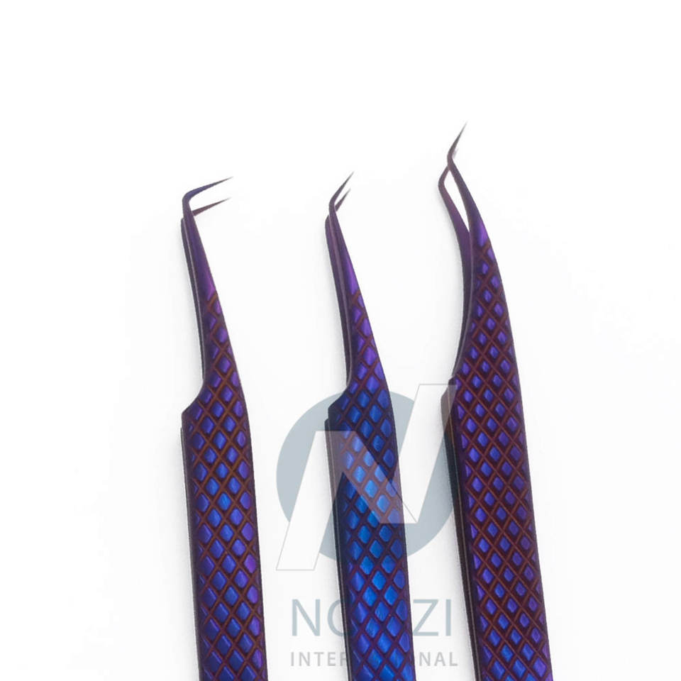 Pinzas de extensión de pestañas postizas con agarre de Diamante Azul de 3 piezas, último juego de acero inoxidable recubierto de Plasma, puntiagudo privado