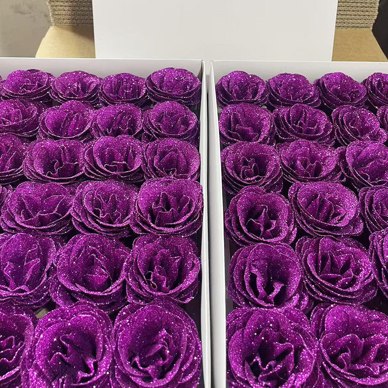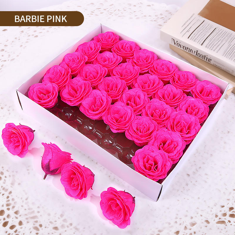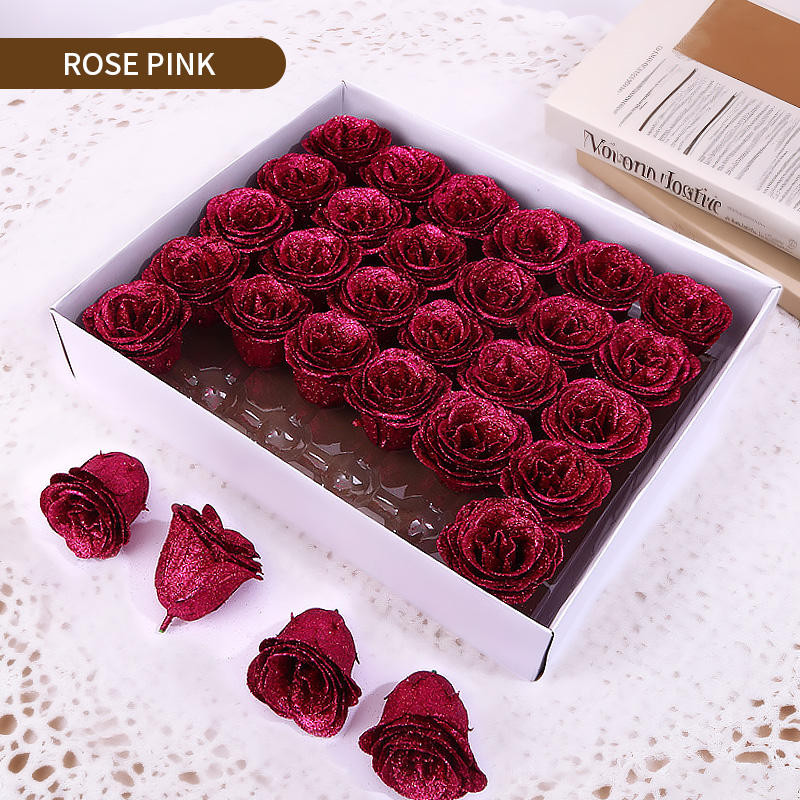 Venta Caliente: Caja de 30 Piezas de Flores Artificiales Coloridas con Brillo, Cabezas de Rosa Perpetua, Decoración para Caja de Regalo de Boda o Fiesta