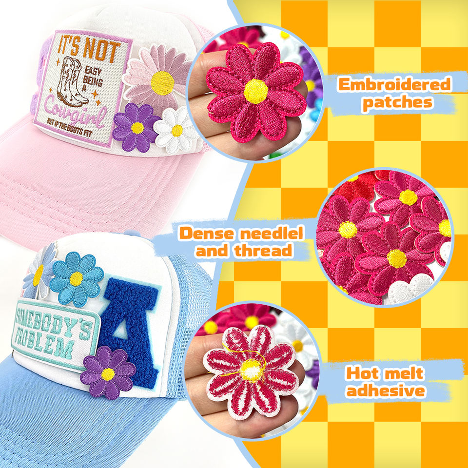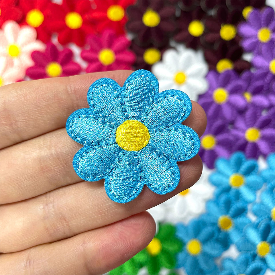 Venta caliente 3D bordado Margarita flor parches coloridos hierro-en accesorios de ropa tejido Chenille tela PVC PU insignias