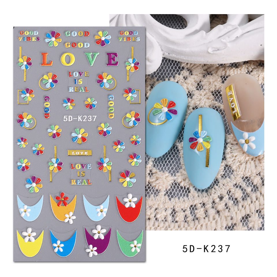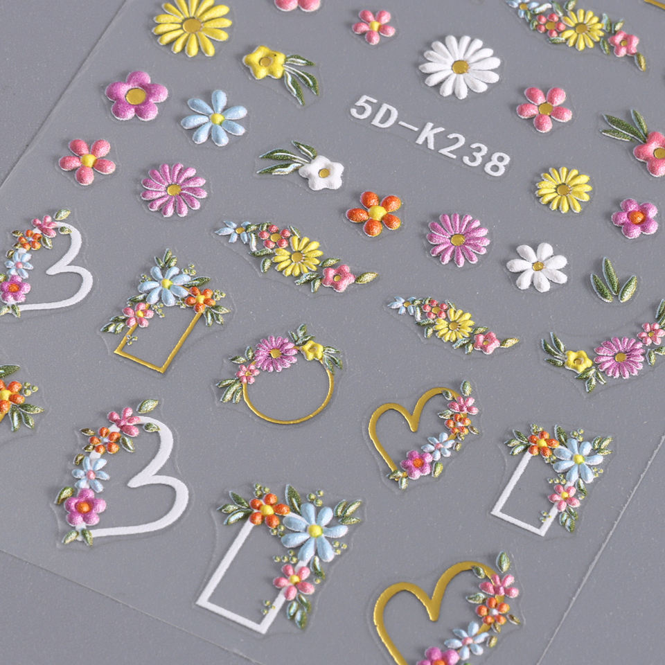 Venta caliente 5D Flower Nail Sticker French Daisy Colorful Nail Art Sticker