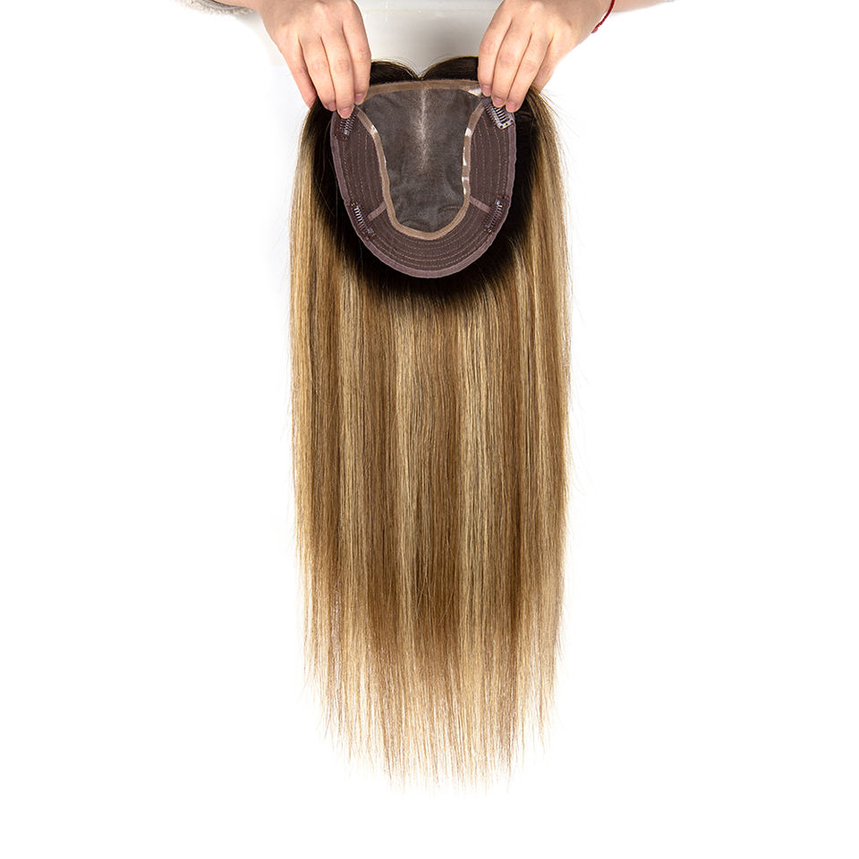 Topper de Cabello Humano Virgen Europeo 6*7 Mono Net Topper con Cutícula Alineada, Base de Seda con Clip, en Stock - ¡Venta Caliente!