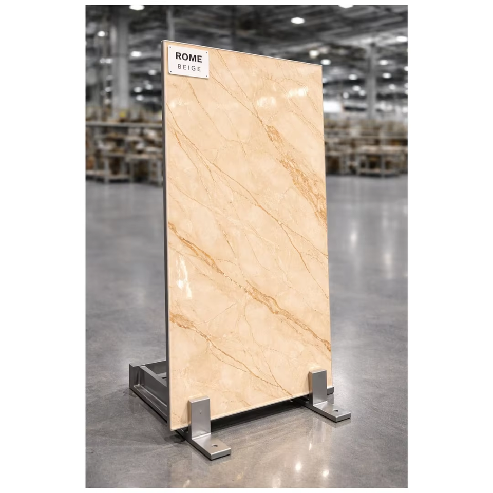 Azulejos de Porcelana de 600x1200mm en Oferta, Acabado Brillante Color Beige Roma, 8mm, para Piso y Pared, Ideales para Dormitorios y Salas de Estar de Lujo