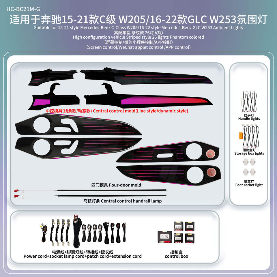Kits de Luces LED de Ambiente para Automóvil de 64 Colores, en Oferta, para Benz Clase C W205 Clase GLC X253 2015-2022, Accesorios Interiores para Automóvil