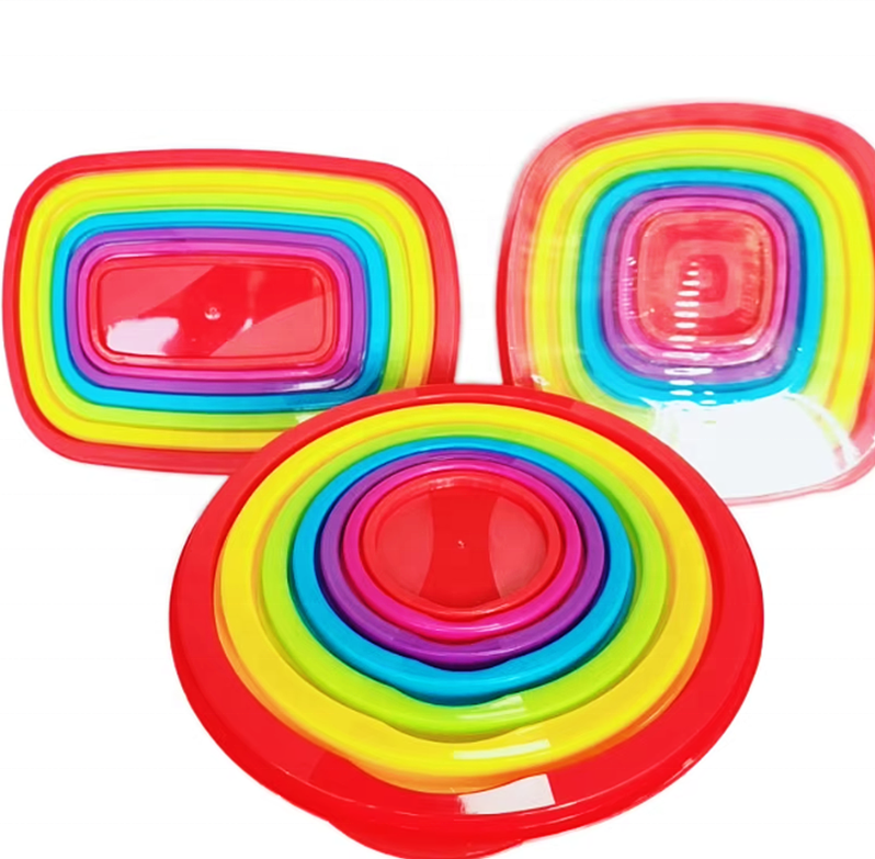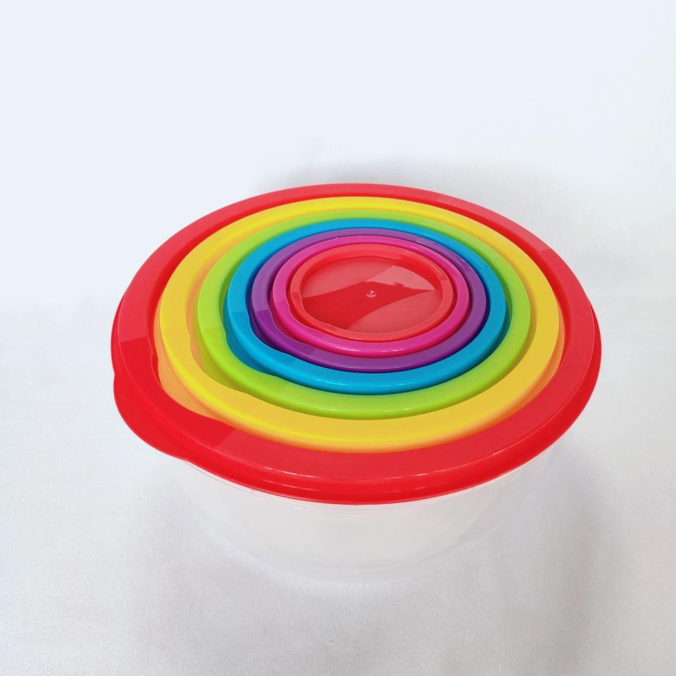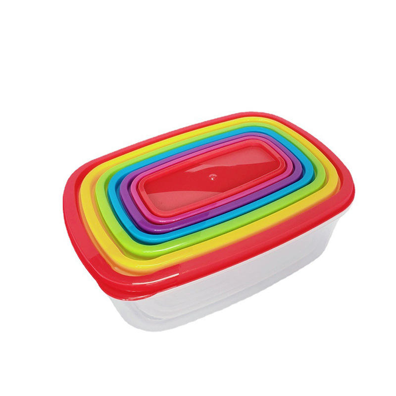 Venta caliente Juego de 7 piezas Rainbow Crisper Refrigerador Microondas Caja de almacenamiento PP Fiambrera con tapa
