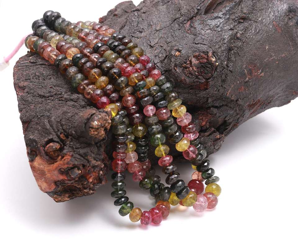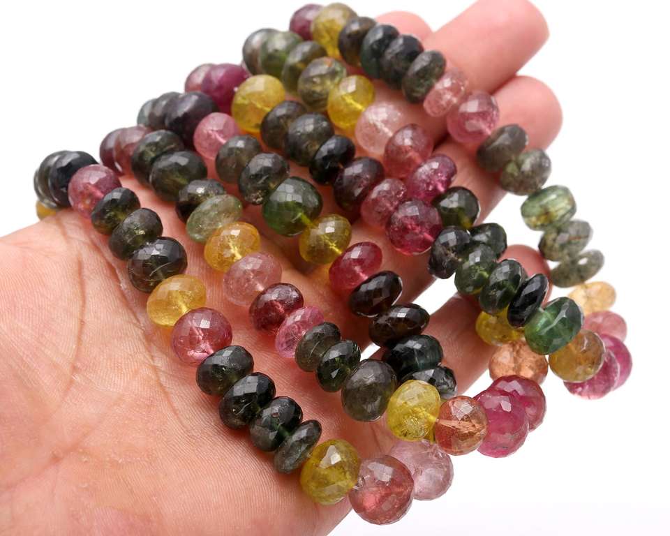 Venta caliente 8mm sandía facetado Rondelle forma turmalina cuentas de piedras preciosas multiturmalina cuentas de piedra suelta fabricación de joyas