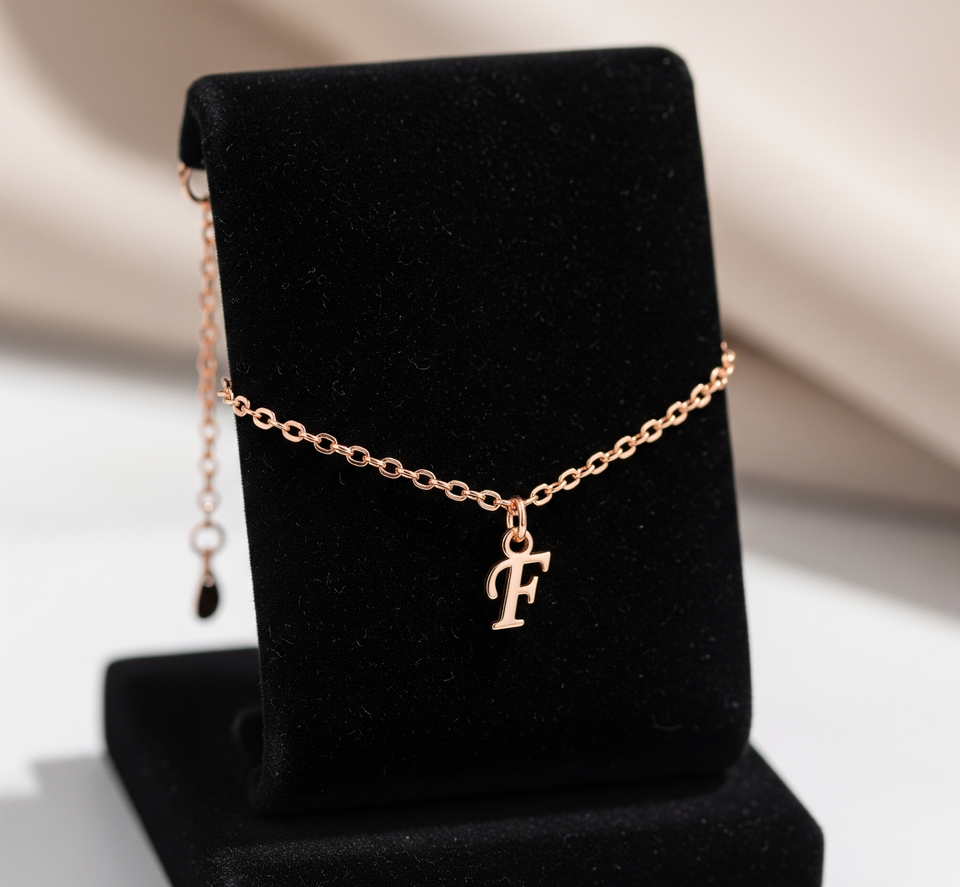 Venta caliente 925 pulsera de cadena de eslabones finos chapados en oro de ley con colgante de letra regalo de uso diario