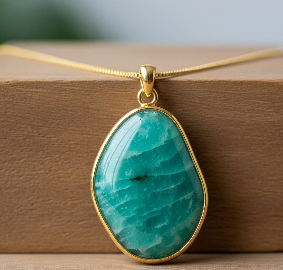 Venta caliente 925 Cadena delicada de plata esterlina 18K Ajuste de bisel de oro Colgante de cristal curativo Amazonita Bohemia Moda delicada