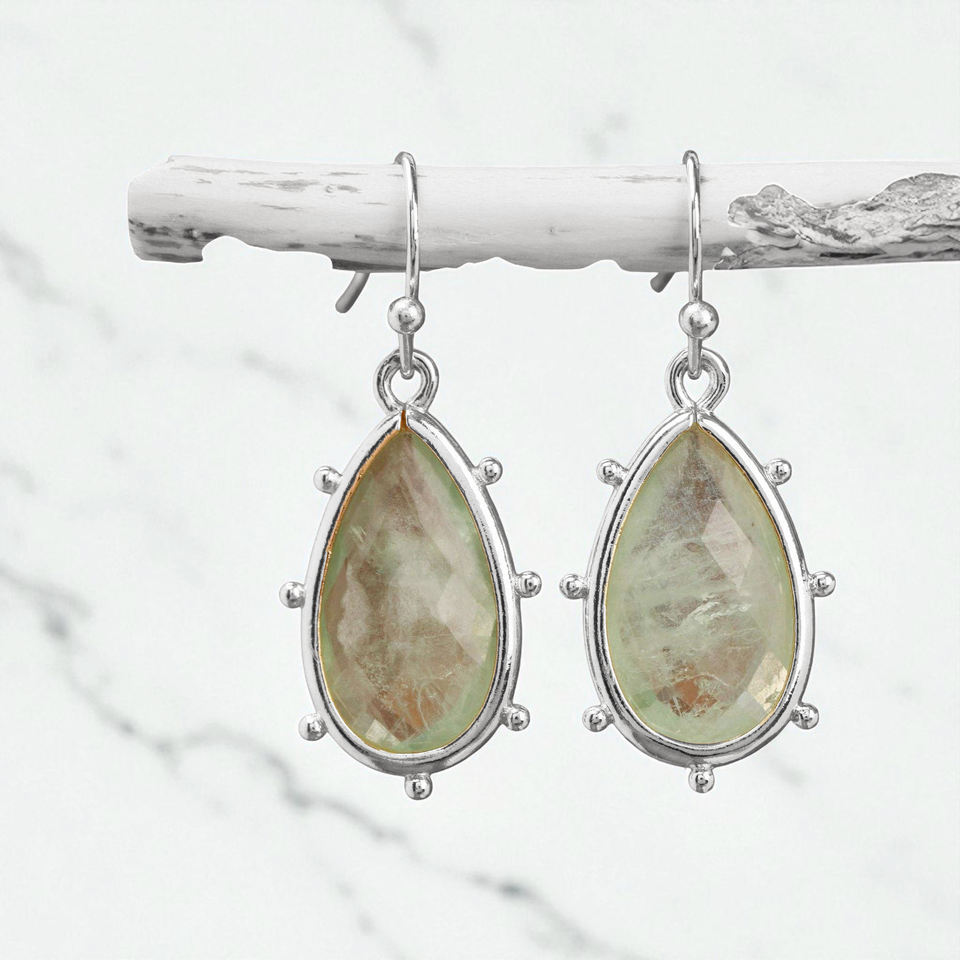 Pendientes colgantes de gota de fluorita verde facetada de Plata de Ley 925, fábrica personalizada, ocasión de boda, moissanita a granel