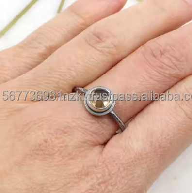 Nombre del producto:Anillo de plata esterlina 925 Cuarzo ahumado
