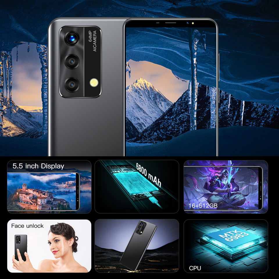 Venta caliente A03S Original 6 pulgadas 12GB + 512GB 24MP + 48MP Pantalla grande Teléfono móvil Smartphone 5G Teléfono celular móvil