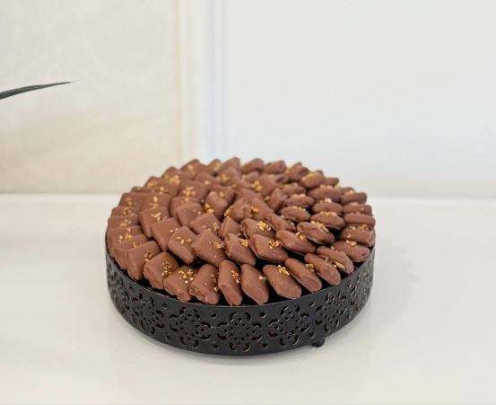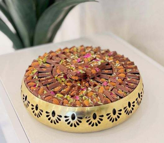 Plato de postre y chocolates fundido de metal de aluminio de Venta caliente con acabado dorado para Ramadán y fiesta de bodas