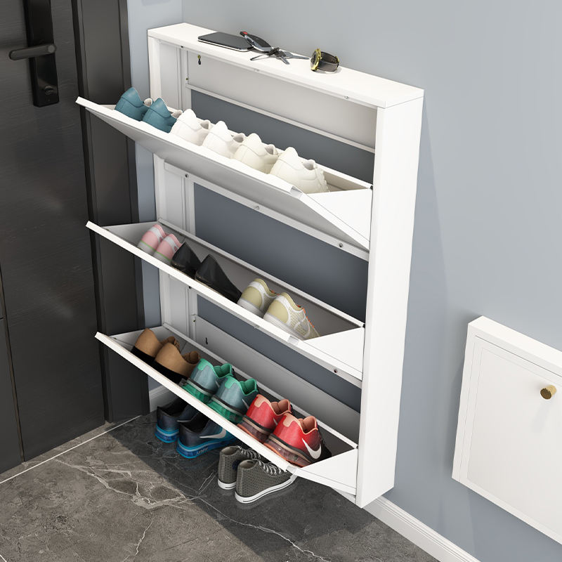 Gabinete de almacenamiento de zapatos moderno blanco ultrafino de 3 capas Zapatero basculante duradero para entrada