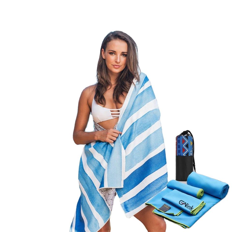 Toalla de Playa de Microfibra Antimicrobiana, Comprimida, Impresa, de Secado Rápido, con Logotipo Personalizado