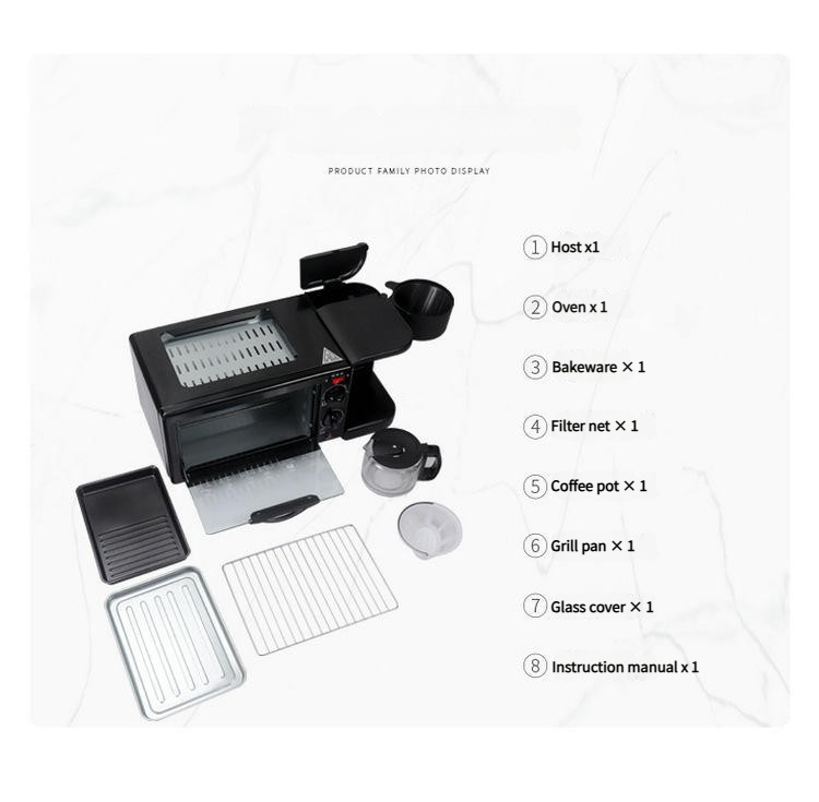 Venta caliente automático multifunción hogar 3 en 1 horno tres en uno fabricante de desayuno para el hogar pan Pizza sartén
