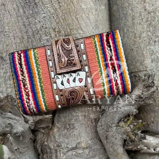 Product name:Designer Tooled Aztec Leather Clutch