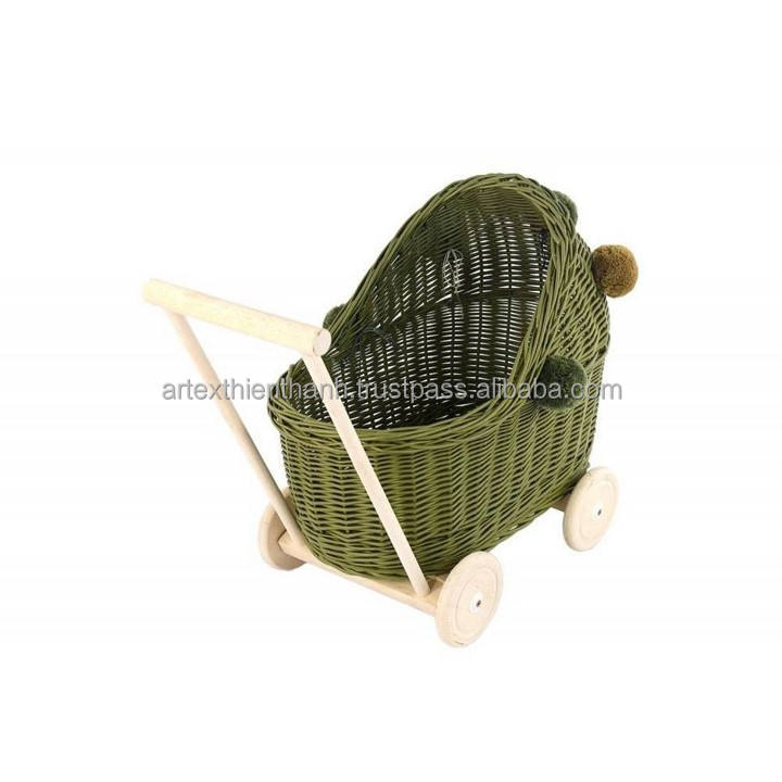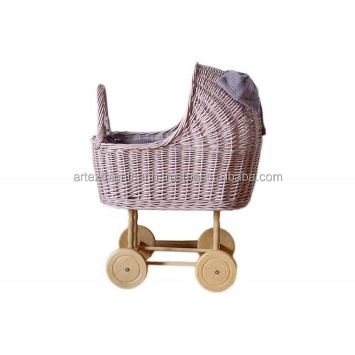 Carrito de Bebé de Mimbre de Bambú, Carrito de Mimbre Mate, Cochecito de Mimbre, Cochecito de Muñecas de Mimbre y Madera
