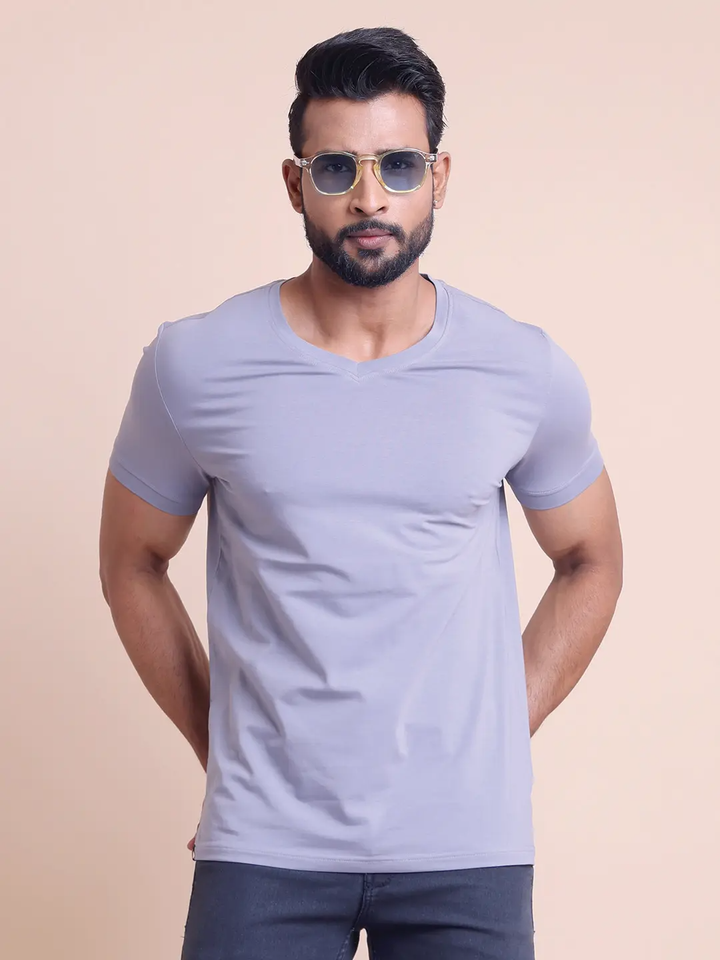 Venta caliente básica estirable cuello en V media manga Camiseta cómoda versátil esencial para la ropa informal diaria 100% algodón