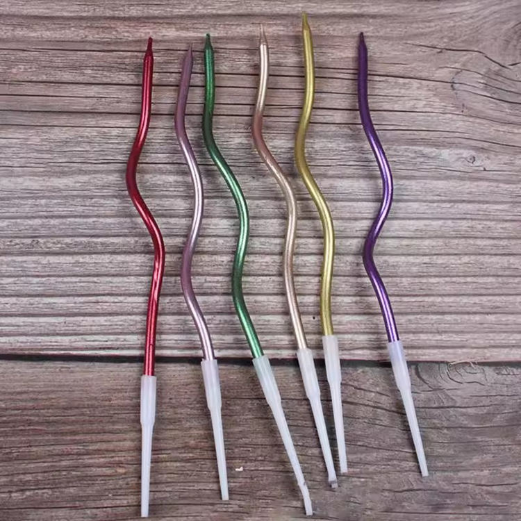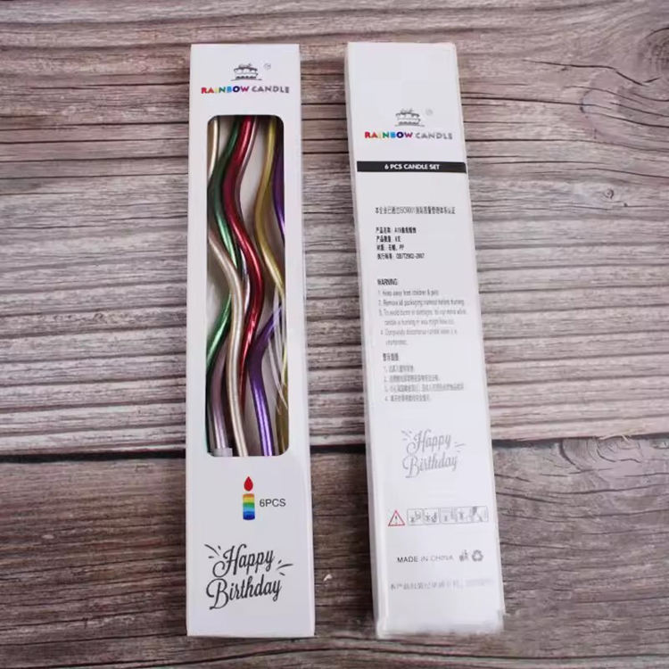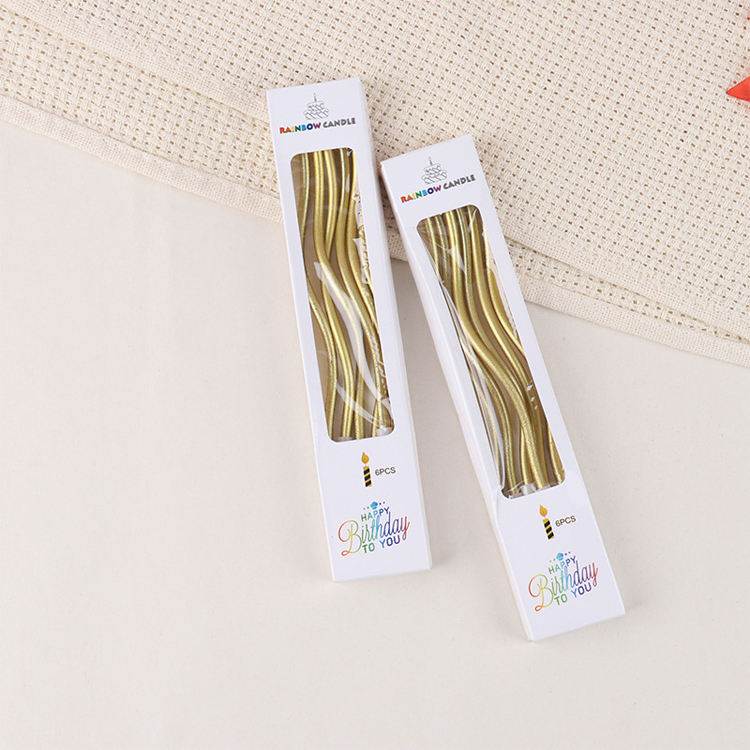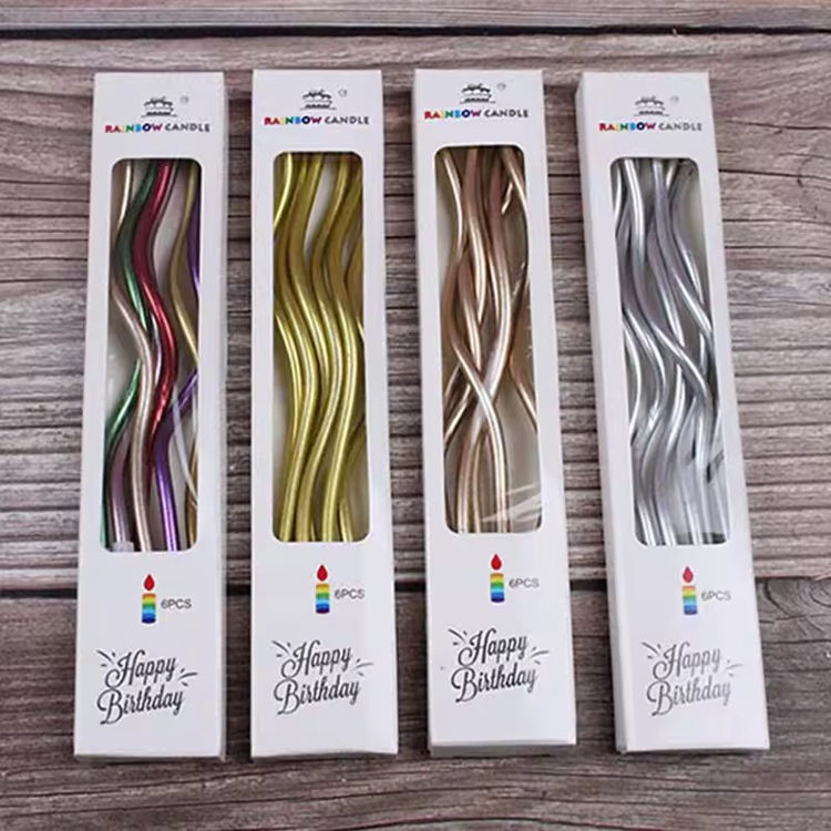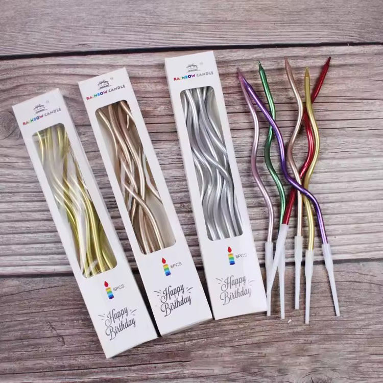 Venta caliente hermoso colorido Arco Iris rizado bobina alto Feliz cumpleaños pastel velas chapadas en oro vela curva