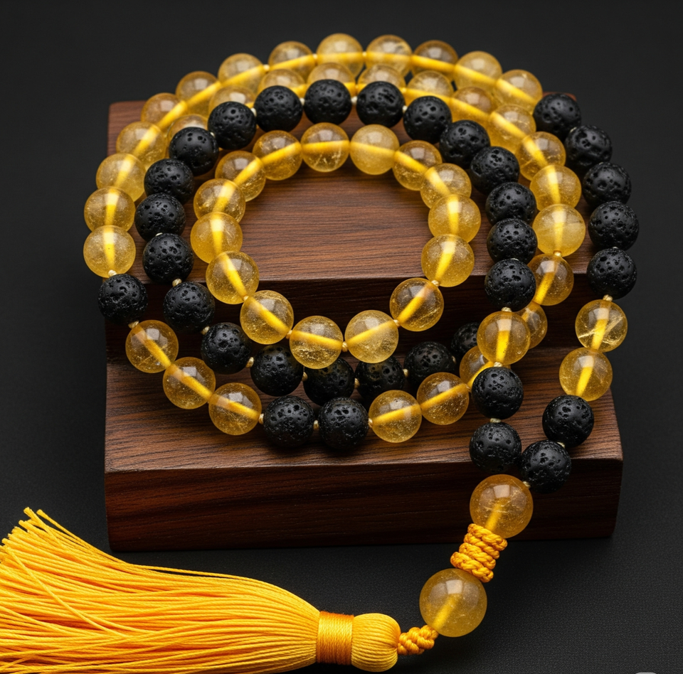 Venta caliente bohemio 108 Mala cuentas collar hecho a mano citrino Natural Lava cuentas curación piedra de cristal para regalo de budismo