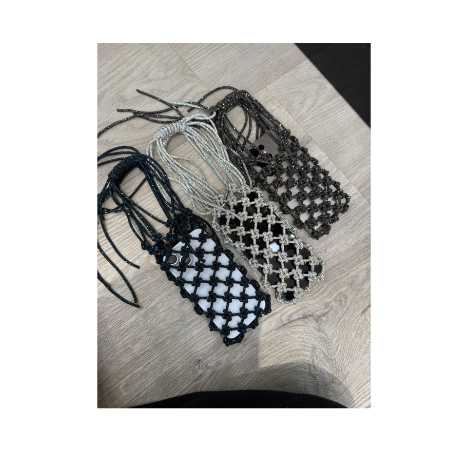 Pattern::Open grid design, phone visible through weave