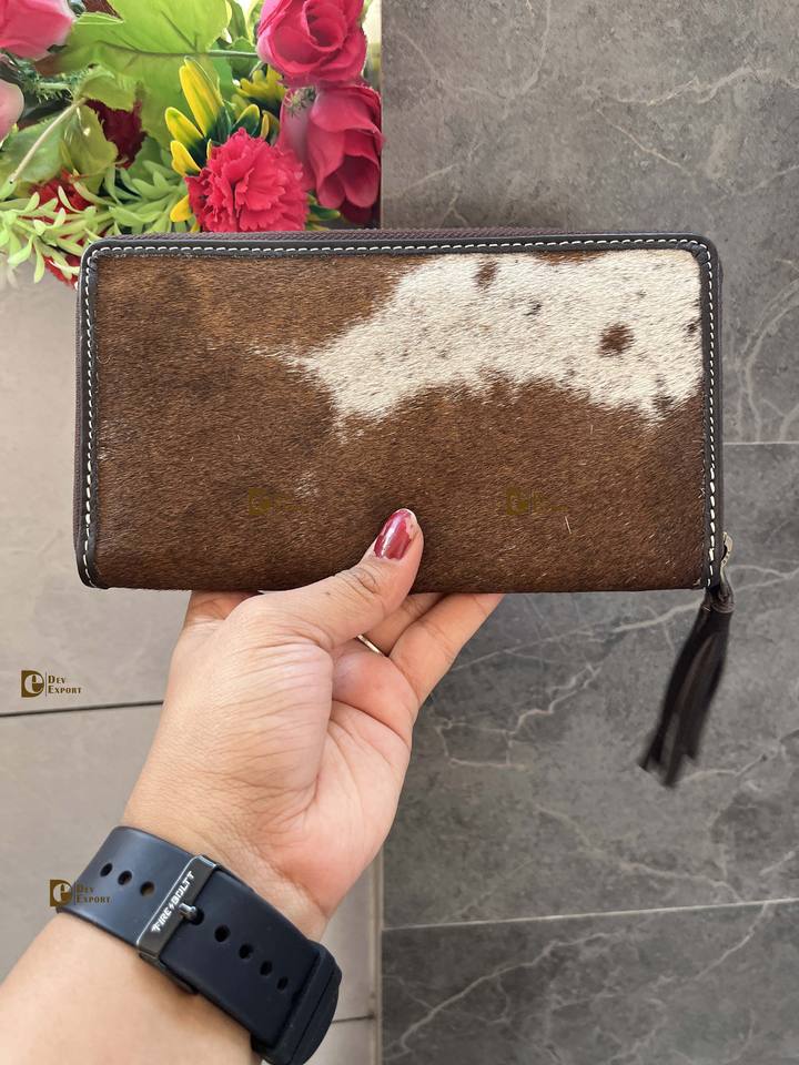 Bolso de mano de cuero de vaca occidental con estilo, billetera multiusos con tallado y diseño manual
