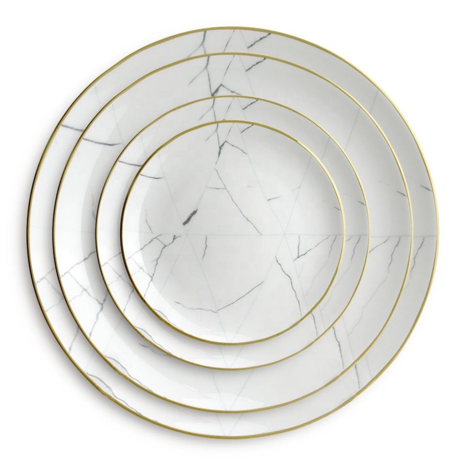 Venta caliente Juego de cena de cerámica Llanta Cargador Plato Platos DE BODA Oro Venta caliente Vajilla de porcelana de mármol de alta calidad